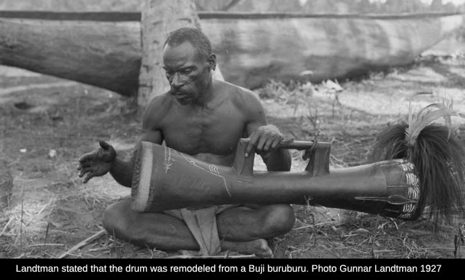 Landtman’s original comment (1927: 44) was: New drums are made at Mawatta like the Budji buruburu in shape, but provided with different decoration.