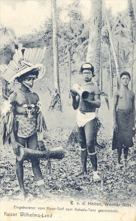 "It is a common feature of the drums made in the Huon Gulf area that they are all narrower in the middle and broader toward the ends, that is, they are shaped like hour-glasses.