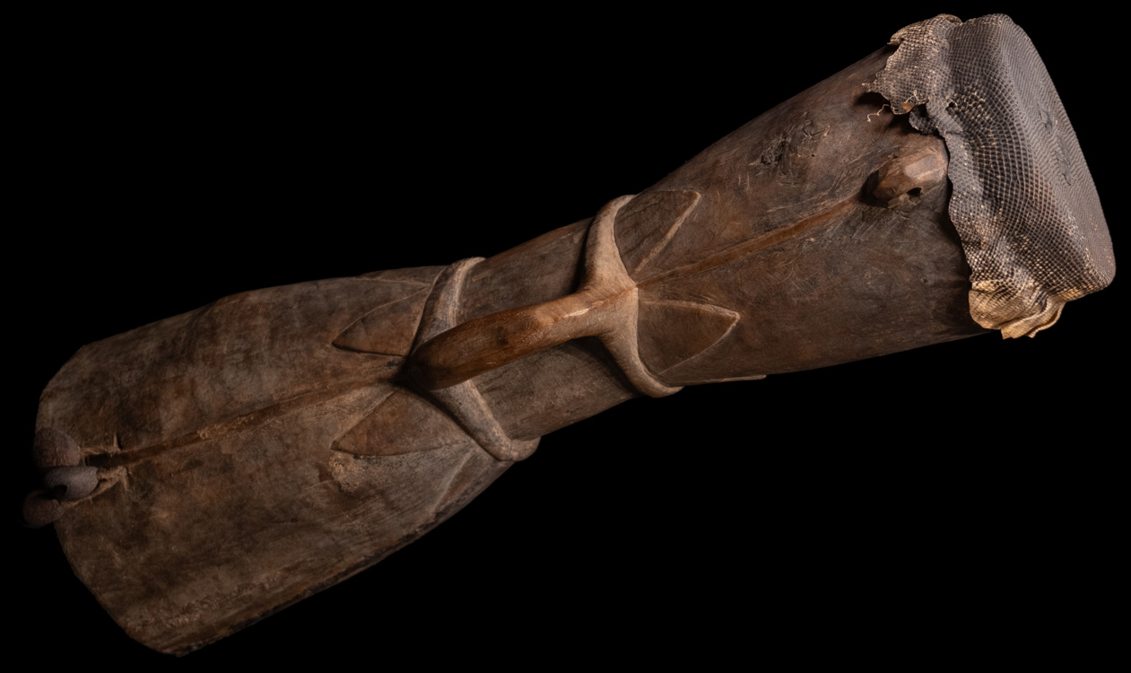 Drums were carved with an adze and hollowed out by a slow burning process.