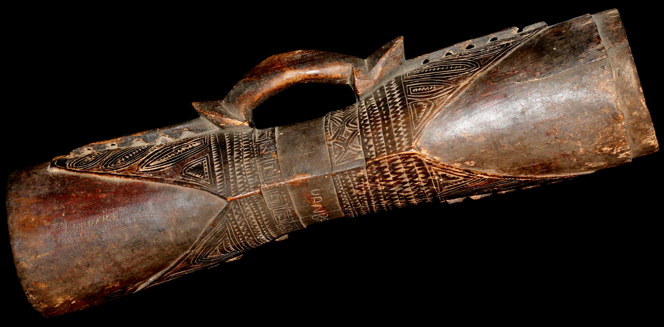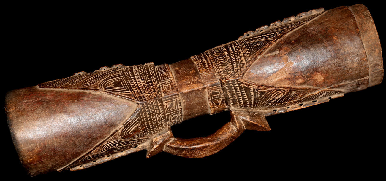 Drums were carved with an adze and hollowed out by a slow burning process.
