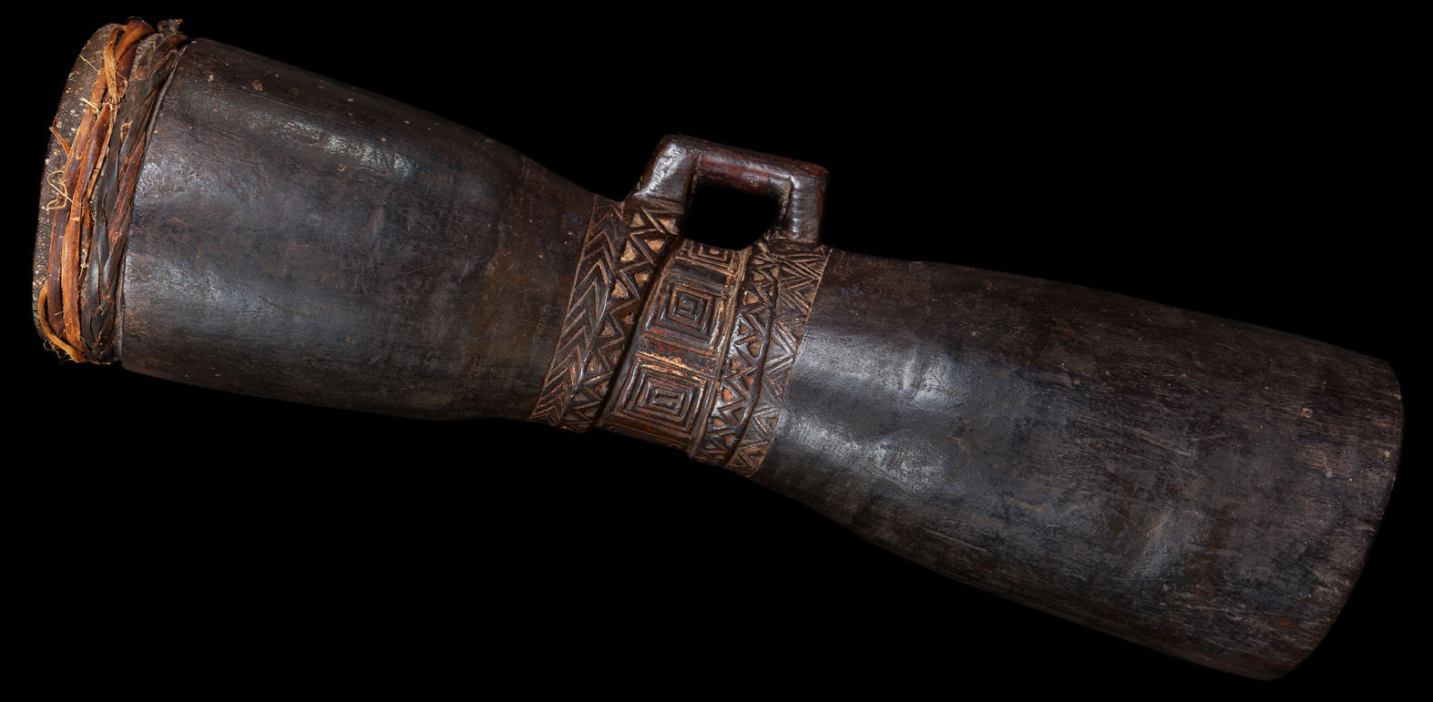 Drums were carved with an adze and hollowed out by a slow burning process.